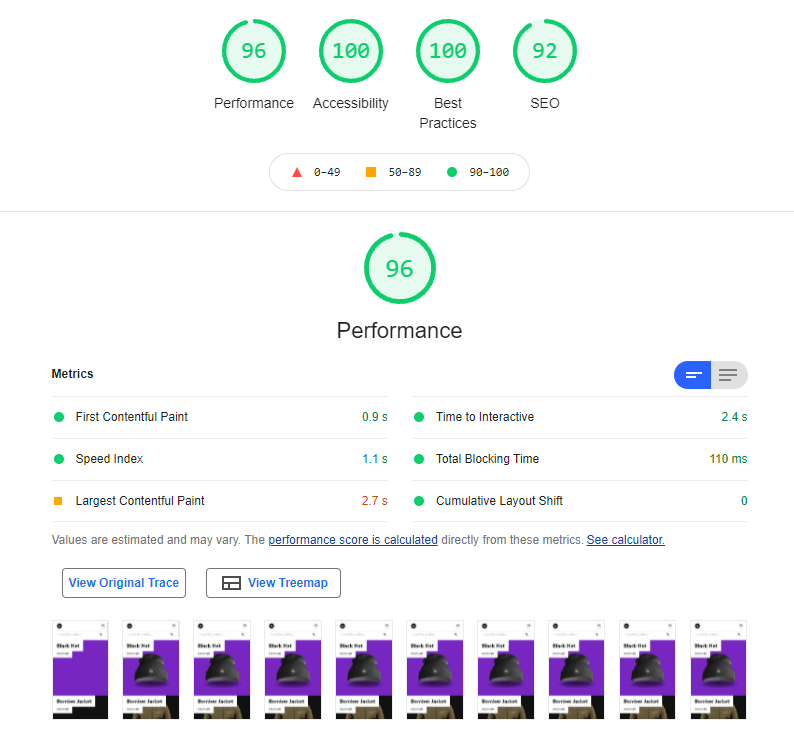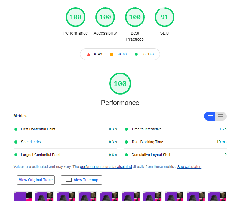 Google Lighthouse results for Desktop