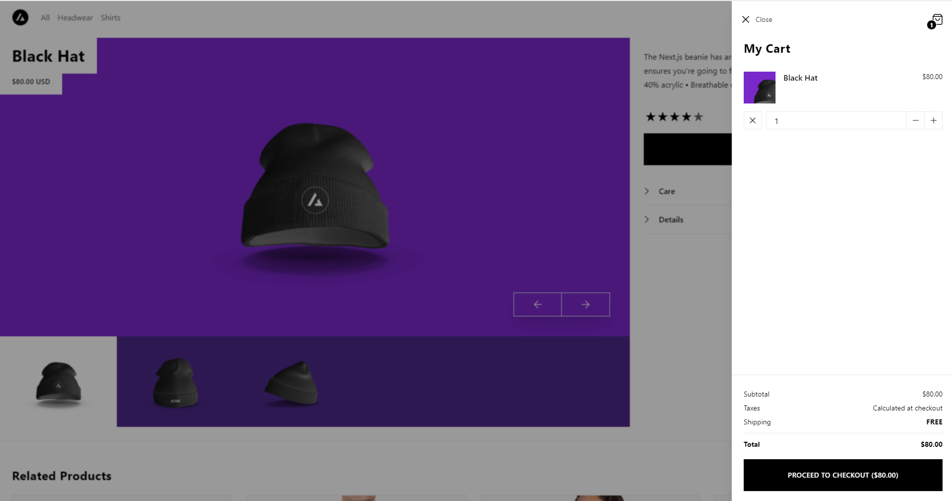 Next.js Commerce is a React starter kit for high performance ecommerce sites. It is optimised for production and supports Static Site Generation (SSG), Server Side Rendering (SSR) and incremental static regeneration among other things. It provides a starting point to build and fully customise your own ecommerce storefront. More details can be found here and source code can be found here.