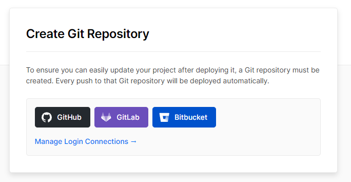 The first step in the wizard is to create a Git repository for your project which cloned from the Next.js Commerce repository. For this, you need to connect Vercel to your Git platform of choice. I used GitHub, but you can use also GitLab or Bitbucket. Note that you choose to create either a public or private repository.