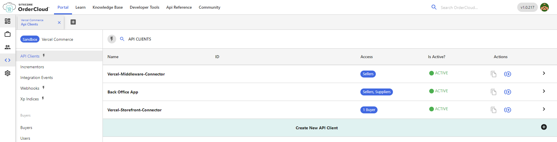 Note that the integration also creates the required API clients. This can be verified by getting a list of API clients via the API console in the OrderCloud portal: