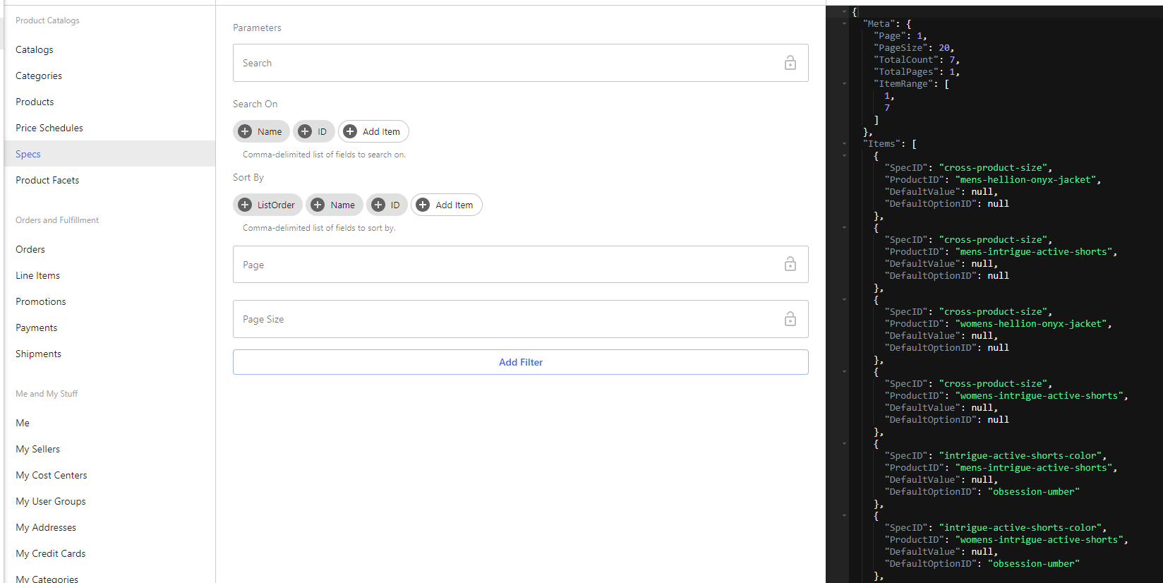 Once Spec Options and Specs are created, the Specs have been assigned to applicable products. We can get all spec assignments using the list spec product assignments endpoint: